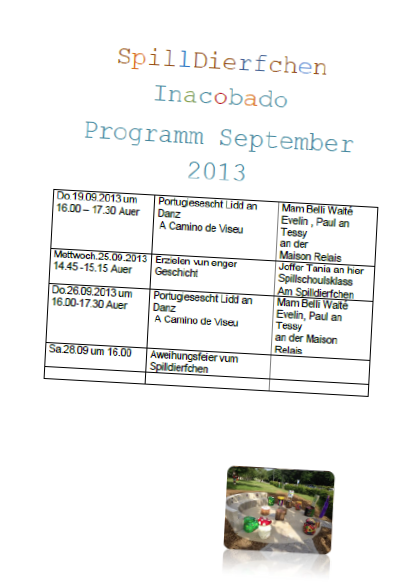 Eist Spilldierfchen hat elo bal ëmmer reegelméisseg Aktivitéiten. Hei e puer Beispiller: